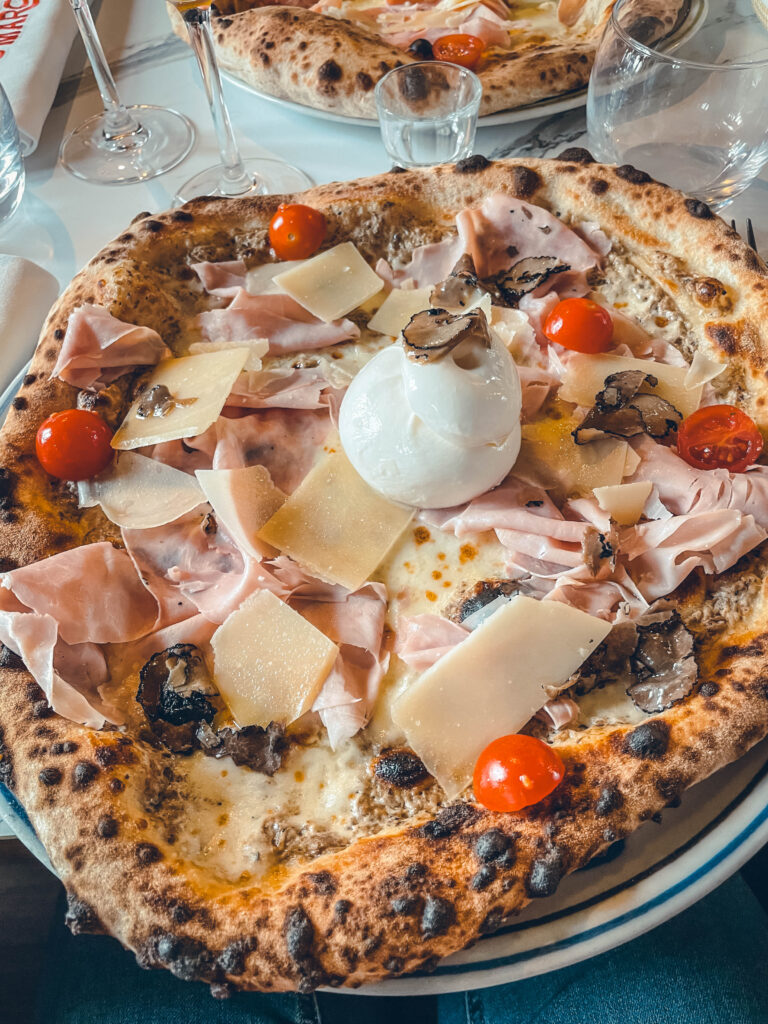 Peppe met à l’honneur les véritables pizzas napolitaines à la pâte moelleuse et épaisse. Ils ont d’ailleurs gagné le championnat du monde avec une pizza à base de sauce tomate jaune, jambon de Parme 24 mois, mozzarella di Bufala, amandes grillées, provolone et confiture de figues (photo de gauche). Cette création était juste mémorable, et les pizzas sont délicieuses de manière générale.