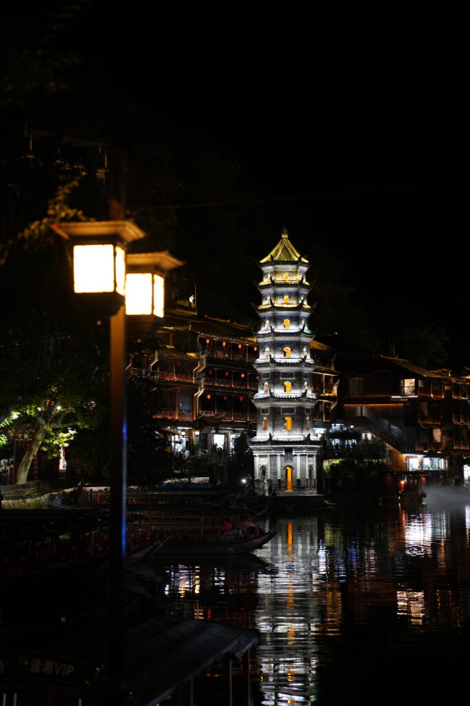Fenghuang est une ville absolument magnifique avec un charme incroyable. Des maisons sur pilotis se situent de part et d’autre de la rivière et le soir, le village est illuminé et brille de mille feux. Il y a même des spectacles sur l’eau.