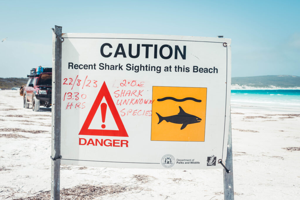 | 💡Les campings de Lucky Bay et Cape Le Grand sont complets des mois à l’avance. De plus, sachez qu’il y a des accès pour conduire sur les plages, mais ils sont souvent réservés aux 4X4 uniquement. Faites également attention aux requins, plusieurs attaques ont été recensées dans les environs. Il y a des panneaux pour le rappeler. Enfin, si comme nous, vous ne disposez que d’une seule journée de beau temps, il est possible de faire les plages de l’ouest le matin en commençant par la Road Ocean Drive via une boucle de 20km puis continuer à l’est l’après-midi, ou inversement selon où vous campez. |