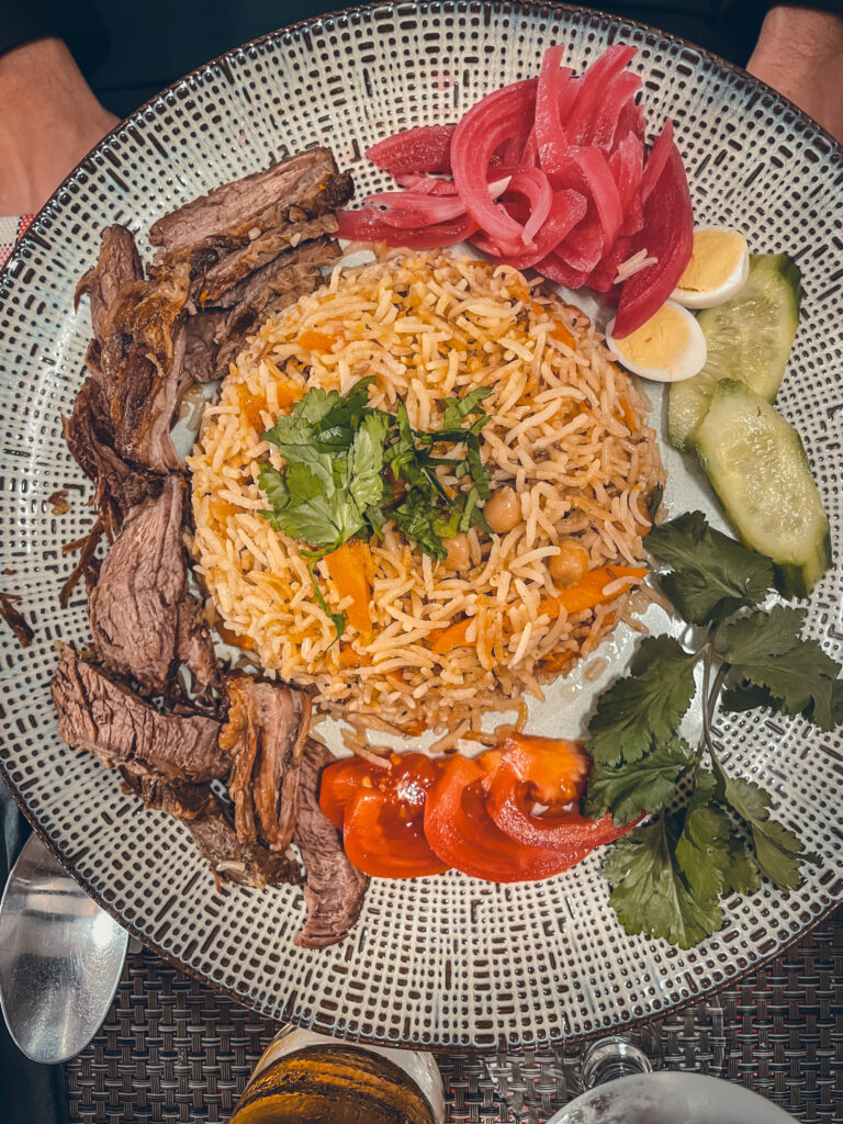 Ce restaurant ouzbek ne paye pas de mine d’extérieur et pourtant, c’est une vraie pépite ! On a découvert une cuisine très savoureuse avec des plats emblématiques tels que le manti – ravioli cuit vapeur, le chouchvara – un bouillon de bœuf aux raviolis et le plov, plat national à base de riz, bœuf et légumes. En plus, les prix sont vraiment accessibles avec une formule déjeuner à 23€.