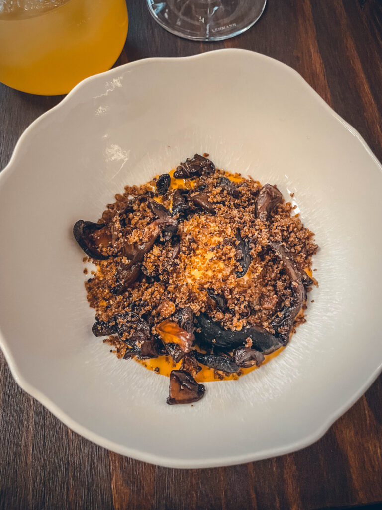 Cette nouvelle adresse du 6ème arrondissement fait déjà beaucoup parler d’elle ! Carbone, c’est une cuisine ouverte, à la flamme, qui prône le bon goût des braises et du barbecue. J’ai mangé au comptoir, face à la cuisine, des assiettes simples mais très bien réalisées. En revanche, j’ai trouvé le dessert très simple et sans aucun jeu de texture : une purée de courge, une chantilly mascarpone et un grué de café.